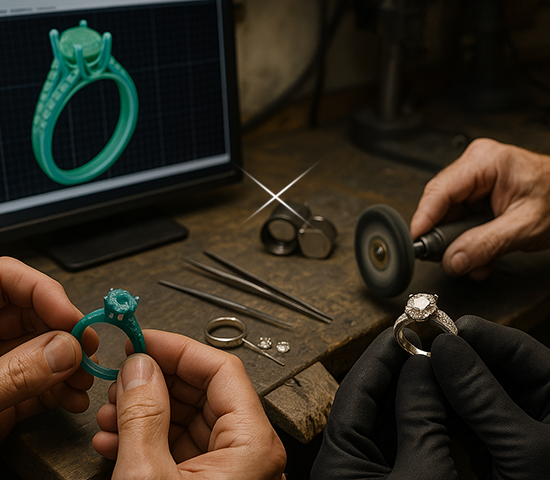 The final step includes polishing and quality checks, ensuring your bespoke jewellery shines with perfection and is ready to cherish forever.